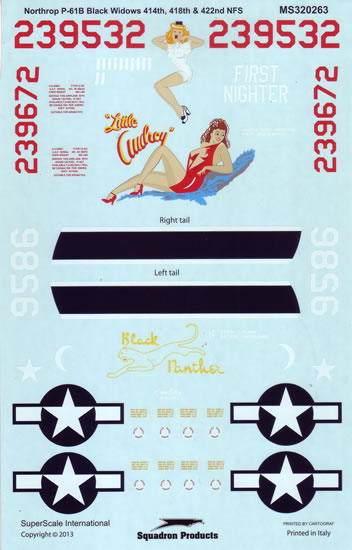 SuperScale International Item Nos: MS 320262; MS 320263 - P-61B Black Widow Decals |
