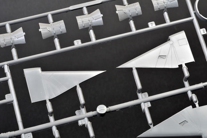 The nosewheel is replaced by a resin wheel and the Pratt and Whitney rear portions get a combined resin and PE makeover. The best part is the resin turkey feathers, such a prominent external feature of the F-15.
