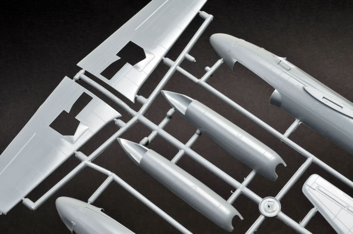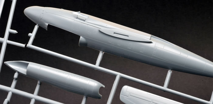 The airframe is a very straightforward affair, and I envisage these kits being quite quick to assemble. The integral engine nacelles are moulded separately from the main fuselage halves, and have internal intake and exhaust ducts included, along with their respective compressor and turbine faces. The engine nacelles fit into deep rebates in the fuselage halves, which I think should make for filler-free joins along their length. However, I suspect that some filler and sanding will be needed to blend the inlets and their ducting. This job is the only "pain", and a slight one at that, that I can foresee.