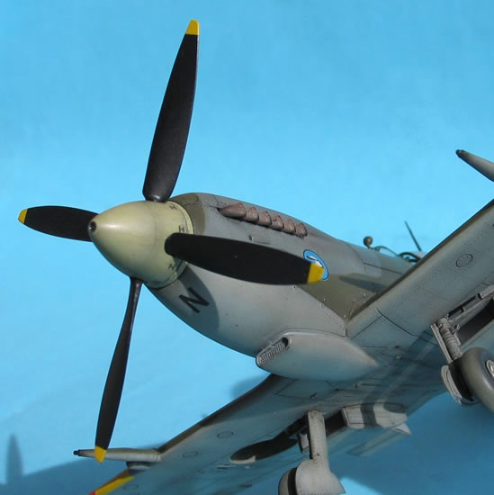 This is my 1/48 scale Eduard Spitfire Mk.IXc finished with the markings of ML296, DU-N flown by F/Lt Otto Smik, No. 312 Squadron, North Weald AB, Late August, 1944.
