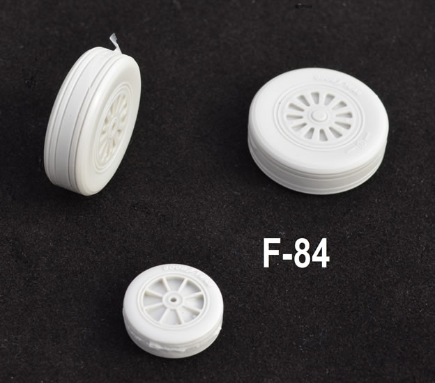A-3227 F-84 Thunderjet, cast resin wheels and tires to up-grade the HobbyBoss 1/32 scale F-84 Thunderjet.