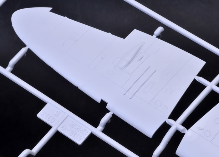 Surface detail is by way of recessed panel lines. These are finer than those seen on any of Airfix’s latest generation of 1:48 scale Spitfires. Fabric texture on the elevators and rudder is subtle and I like the raised fasteners on the engine cowlings.