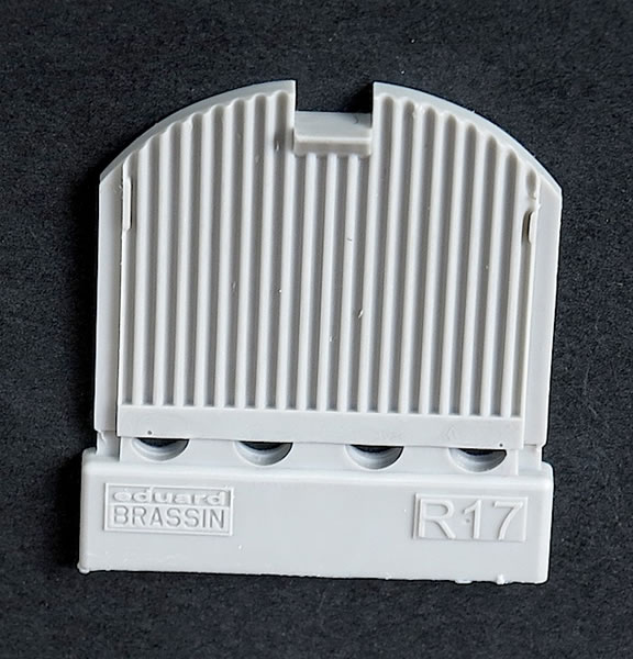 Brassin and photo-etched parts completely replace the original kit cockpit. The resin castings are beautifully done, with the one-piece sidewalls especially nice.