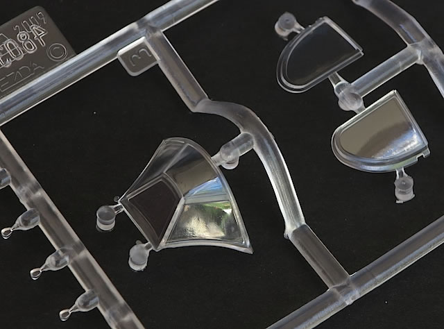 The transparent parts are packaged separately and, while not sparkling on the sprue, should shine up with a dip in Future. The pre-cut tape masks will make painting both the canopy and the wheels significantly easier.