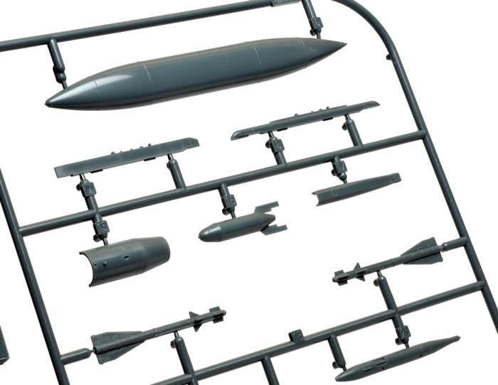 The R sprue is a new inclusion containing the parts for the type D daytime PHOTINT photographic pod and type R ELINT electronic reconnaissance pods.