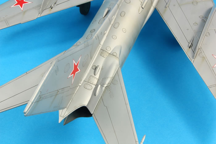 On its legs and completed, it was a sight to behold. Far bigger and more complex to build than the superficially similar MiG-17 and MiG-15, I have grown to like the look of this aircraft. It was a fight at times, and rough round the edges, but for all its faults and failings, I love having it on the shelf next to its smaller predecessors. I'd love to have the MiG-19S too, but I believe the nose isn't quite right on that either and I've not seen a correction set produced yet.