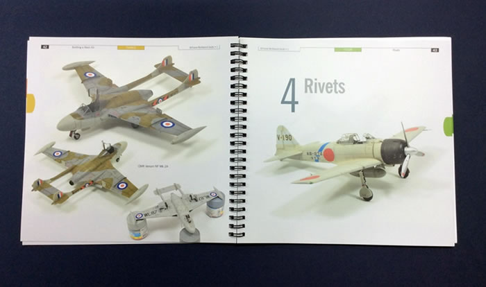 The book uses a wire spiral binding with an almost square format featuring full colour throughout. The spiral binding means the pages can be turned completely back on themselves, effectively halving the book’s size when opened; and so it is ideal for use at the modelling bench whist working on a project. It covers the following topics: