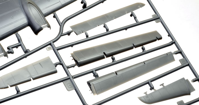 The clear sprue includes the side windows, each side moulded as one strip, making assembly easier and cleaner. The canopy features extremely fine windscreen detail, although it is likely that this part will be more defined when the final version of the kit is released. Other clear parts include several domes, windows and lights.