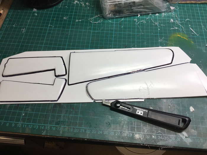 Separation of vacuform parts was done using a thick felt pen and the 45° scribing method, followed by careful sanding and test fitting.