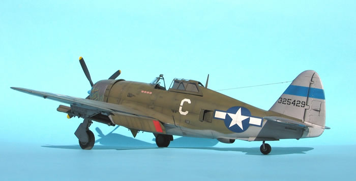 The cockpit was modified with Eduard instrument panel and seat belts. Wheels replaced with Ultracast P-47 Thunderbolt Wheels, Diamond Treads.