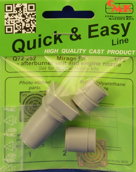 The sets reviewed here are intended to enhance the recently released Special Hobby Mirage F.1 kits. The afterburner and engine nozzle set is suitable for both the all versions, whereas the radar and MB.4 ejection seat are for the Mirage F.1C/C200. Although not included in this review, CMK offers MB.10 ejection seats for Special Hobby’s Mirage F.1B/BE and F.1CR/CT kits, a wheel set for all versions, and a Cyrano IV radar with pressurised cover in place (click here to see all sets).