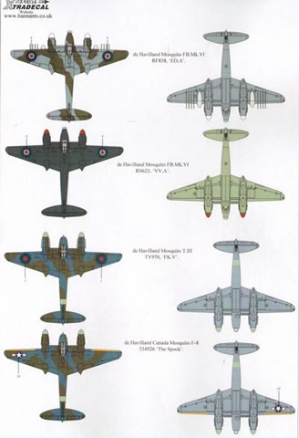 Xtradecal Item No. X48156 - de Havilland Mosquito T.Mk.III, B.Mk.IV, FB.Mk.VI