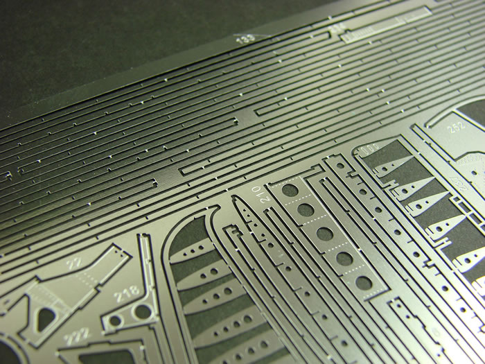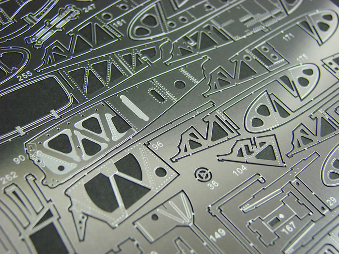 Surface detail on the metal is very good, with nice relief etching and rivet/fastener detail. Many parts are very fragile until they form a more solid overall part of the model construction, so please treat them with a little reverence and respect.