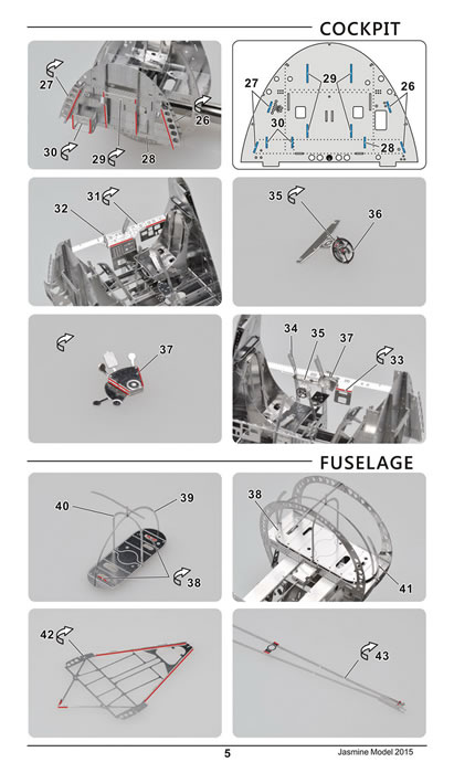 Jasmine has tackled construction in a way that many of us would recognise. With this kit, it starts with the cockpit, and contains 18 stages of folding and slotting work. All parts within the cockpit are from flat PE, including the seat and seatbelts. Next up is the fuselage, and this is of course using the cockpit as its reference part for adding the various ribs, formers and stringers. As nothing here is quite as straightforward as simply moving to the next area of construction, you will add various other assemblies, such as the tail wheel bay and arrestor hook, and then proceed with the fuselage again, and even back to the cockpit in order to enclose it within fuselage formers etc.