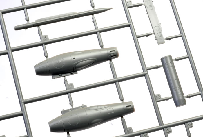 260 light grey injection moulded parts; 14 clear parts; 5 photo-etched metal parts; markings for five aircraft. |