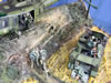 The main land features were formed in styrofoam and completed with a veneer of plaster. Groundwork was added and formed to look windswept by rotor wash.
