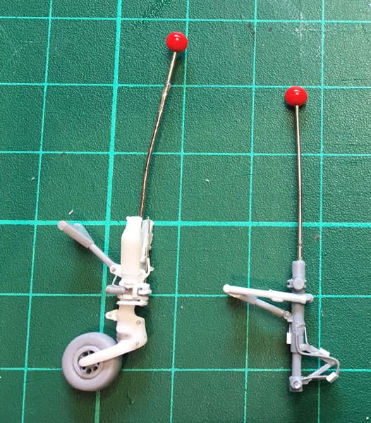 The auxiliary train comes from the MACH2 and detailed with plastic card, stretched cluster and wire. The auxiliary wheel was fully reworked and the main wheels were made from Mirage F1 wheels.