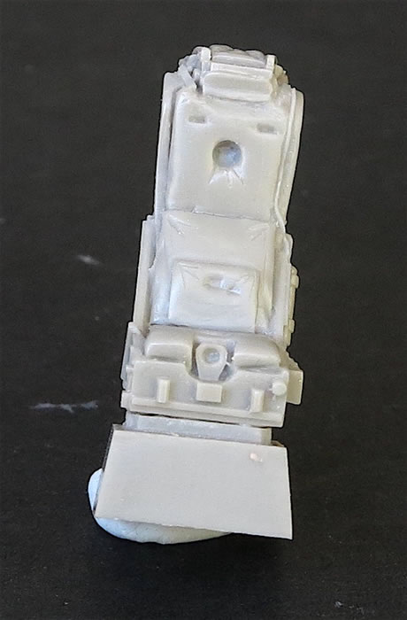 CMK has well captured the shape of the Martin Baker seat. Detail is good – not as crisp as that achieved by some other resin detail manufacturers, but fine for this scale. The seat’s padding and other nooks and crannies will lend themselves well to painting and weathering. Casting quality is reasonably good; there are a couple of minor, almost unnoticeable blemishes on one of the armrests of the review sample, and what appeared to be a fragment of material from the mould stuck to the top left hand side of the seat frame. This was however easily removed with a curved probe.