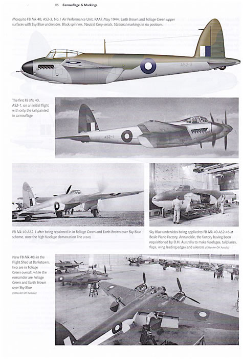 - Chapter 4: Camouflage and Markings. The range of schemes covered in this chapter will pleasantly surprise anyone who thinks Mosquitos were mainly Medium Sea Grey with Dark Green upper surface camouflage. Differences between various role- and theatre-specific schemes are discussed in detail, along with postwar and non-RAF liveries. The chapter concludes with a one-page guide to Mosquito stencilling, which includes information on roundel types and dimensions.