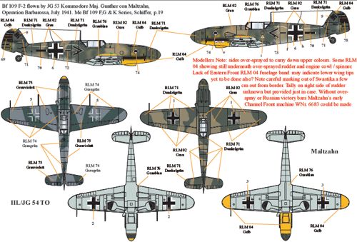 Bf-109F II/JG54 Gruppen Adjutant Eastern Front 1941, uunusual camo, yellow fuselage band and wing tips;