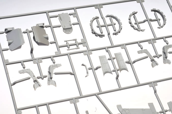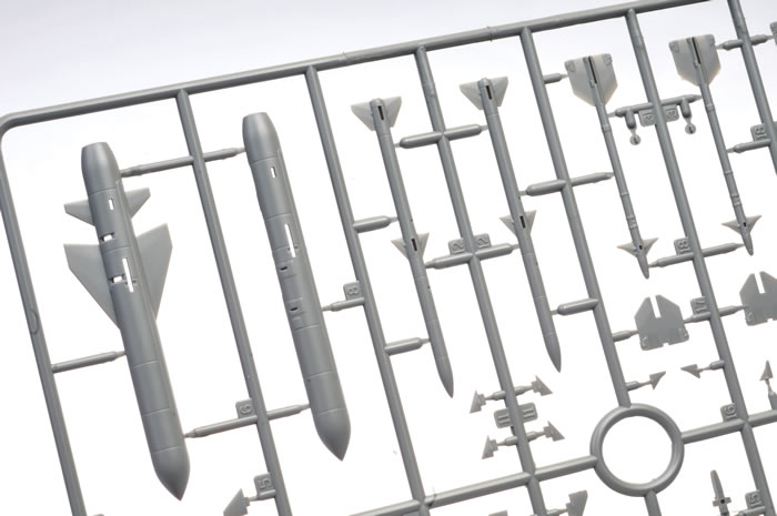 Of the 300-odd grey plastic parts, 140 are dedicated to ordnance. There appear to be bombs and rocket pods that might relate to a possible RAF Harrier release in the future.