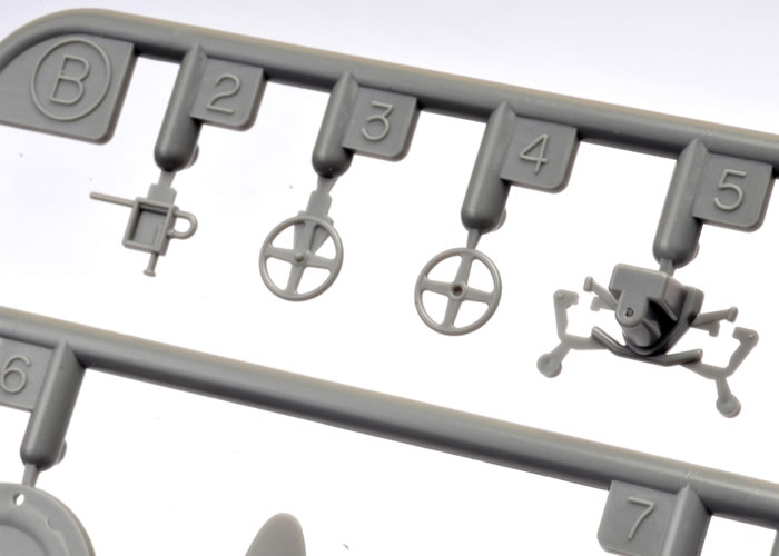 There are some hints about future releases of earlier and later variants moulded onto these sprues, including a Morane mast and filler points on the fuselage for MW50 (later versions) and the Bf 109 F. The instructions clearly advise which recessed hatches should be filled in. The breakdown of the fuselage means that the main fuselage halves could be used for any version of the Bf 109 from the F-2 to the G-10.