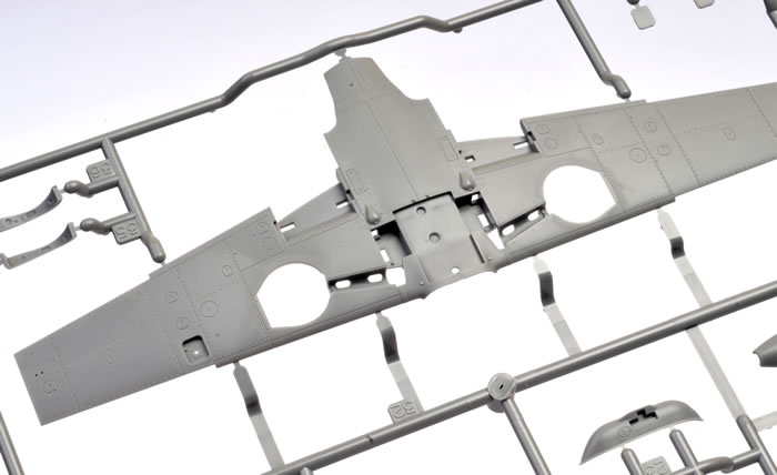 Outboard flaps, radiator flaps and the ailerons are all separate parts and may be posed to taste. The radiator flaps are cleverly designed with two sets of tabs moulded in place. One set of tabs is designed to be sliced off depending on whether the flaps are raised or dropped. The outboard flaps have a similar design feature.
