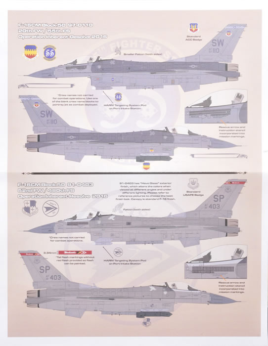 Ten marking options; excellent quality decals printed by Cartograf; two sets of stencils and national markings included; extensive instructions including weapons options and detailed description of F-16CM Block 40 and Block 50 configurations. |