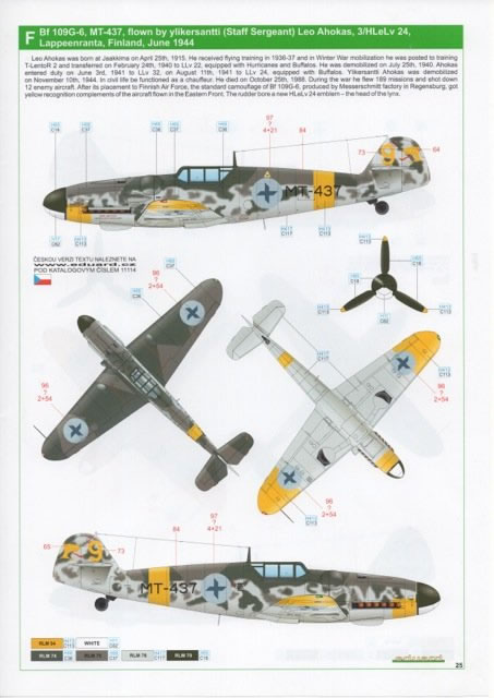 Bf 109 G-6, MT-437, flow by ylikersantti (Staff Sergeant) Leo Ahokas, 3/HLeLv 24, Lappeenranta, Finland, June 1944.