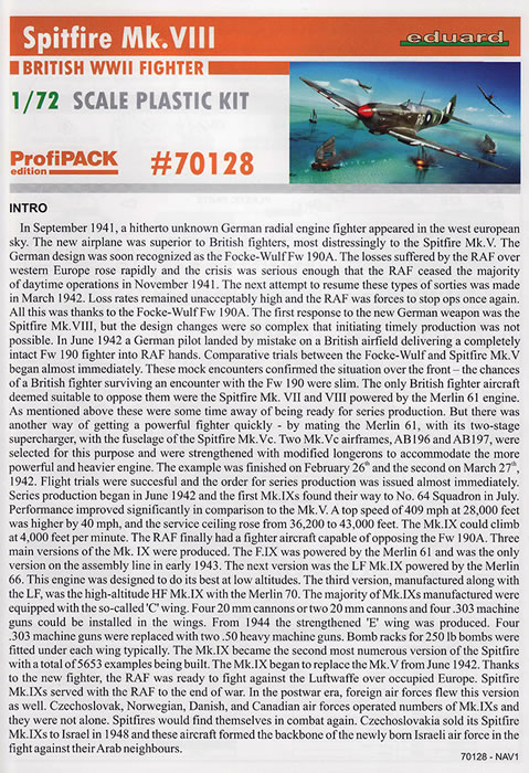 All in all, a very nice, well detailed kit. The Eduard Spitfire Mk VIII kit ticks all the right boxes, a great choice of airframes covering all possible wing tip and tail variations from four different theatres of operations.