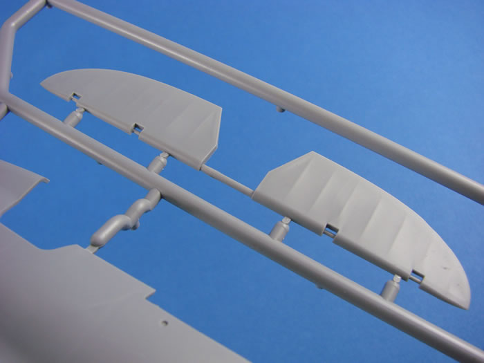 Also moulded here are the stabilisers, ailerons, elevators and rudders. In traditional construction style, these are supplied as upper and lower parts, with the elevator itself being full-span. Rib and fabric details of course extend onto these parts, and to me at least, these look perfectly acceptable. All control surfaces are designed to be moveable too.