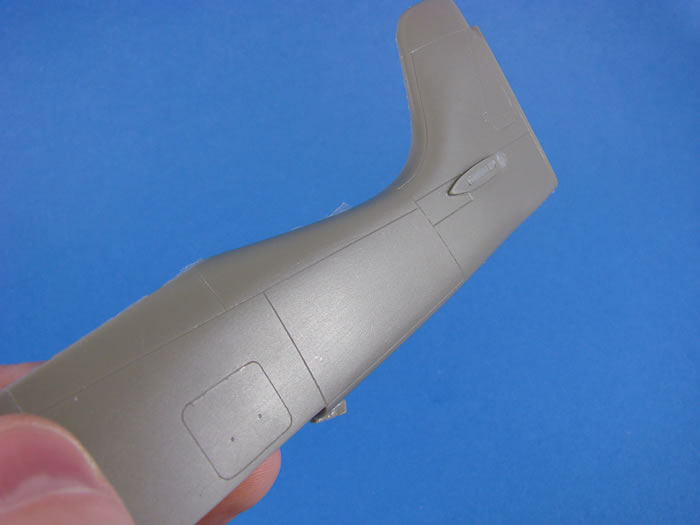 The instrument coaming and forward upper fuselage areas are cast integrally with the remainder of the fuselage. You can clearly see the wing root fairing into which the turbocharger pipework will recess, as well as the intake that sits below the annular radiator. The tail fin is also wide-chord, as with the Ta 152, yet the fuselage isn’t extended as was seen on the 190D series, despite the length of the nose. Presumably the intake under the bellow helped to offset the change in the centre of gravity. Also note that the rudder is cast separately. Internally, there is no detail as this would come from the Hasegawa cockpit parts. There is a very small stub on the underside of the fuselage, which is a remnant of the casting block, so this will be a breeze to remove.