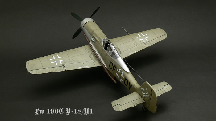 This machine was designed to be armed, and although there appears to be no wing guns, the fuselage ones were still installed. Evidence of this is shown on the forward nose cowling, where the gun ports are actually found, unlike other 190 series where there were channels on the upper cowls for this purpose. With the 190C, the cowl changes meant that these were now embedded within the cowls due to the change in depth of the nose. Note also how angular the nose cowl is, unlike the large curved radius of the A-series machines. This gives the 190C quite an unusual appearance. Radiator details are cast within the main nose ring cowl.