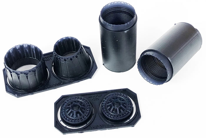 Six grey resin printed parts. |