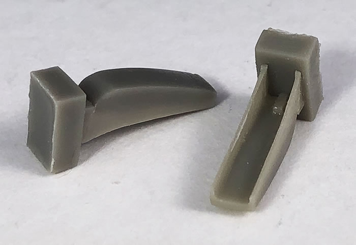 And now onto the problem(s) with this conversion set. Firstly, the gents from Red Roo actually contacted me over a size issues with the air filter ducts. The problem is that the resin representations of the big chunky dust filters on the top of the engine nacelles are undersize. They were estimated from pictures and are wrong! However it is not a difficult fix. I have attached a picture showing one unmodified filter (foreground) and two modified ones at different angles supplied to me by Red Roo. All they did was cut one wall away from the casting, insert a piece of plastic strip and re-join the wall. Two other strips are attached to the bottoms of the walls. Red Roo hope this makes sense.