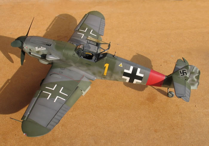 This is 1/32 Hasegawa Messerschmitt Bf 109 G-14/AS with the markings of "Kristin" Yellow 1 from 9./JG300 in December 1944.