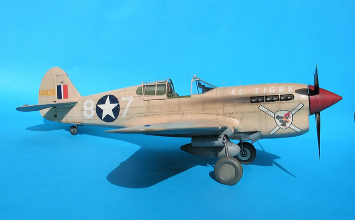 Yet another one from the pandemic isolation days, this is 1/32 Trumpeter P-40F Warhawk “El Tigre” (41-14245) tactical code “87” from 66th FS / 57th FG Sicily 1943.