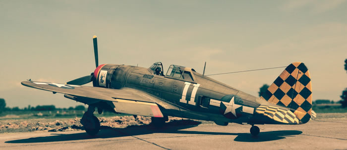 This is my reproduction of the P 47 D Razorback of Major Herschel "Herky" Green.comandante of the 317th FS. DEL 325 FG, known as the clan checkertail for the striking yellow and black checks at the helm of his P 47s.