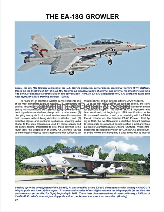After the introduction, the origins and development of this fleet fighter is covered, including the initial drawbacks of the original design. Also included are the other fighters vying for the Super Hornet’s job. The aircraft systems are looked at in the next chapter. This is an area that excels from the previous D&S book. There is a look at the airframe construction, radars, and weapons employed. A chapter goes into the development of the EA-18G Growler which is significantly different than the fighter/attack variant. Flight testing and Operational History of all three variants are covered as well. Particularly interesting is the “pylon toe” that angled the wing pylons. The deployment of the Super Hornet in support of Operations Southern Watch, Enduring Freedom, Iraqi Freedom and Odyssey Dawn is provided. A small section covers the Australian acquisition of the Super Hornet.