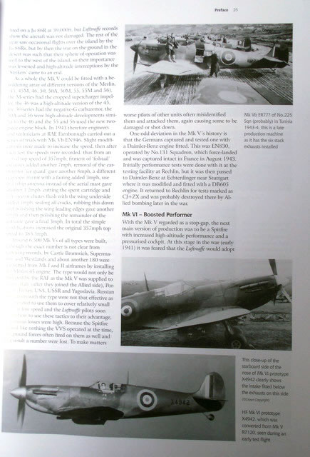 Inside we find a Preface of over fifty pages tracing the lineage, development, RAF and Commonwealth usage and by foreign forces, all illustrated with masses of useful photos. This is followed by four sections covering the evolution of each series - Marks I to V, VI to IX/XVI, the photo-recon versions and then the Seafires. Again there are photos and side profiles to show the developments of each variant.