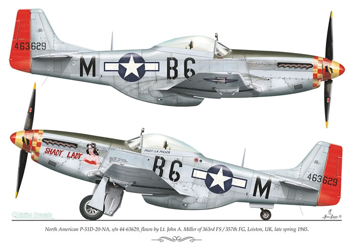 • P-51D-20-NA, s/n 44-63629, flown by Lt. John A. Miller of 363rd FS / 357th FG, Leiston, UK, late spring 1945.