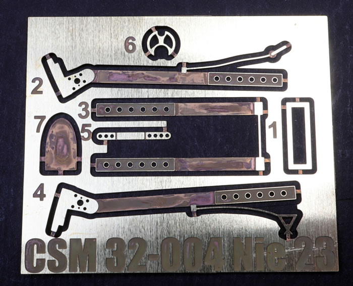 Copper State Models' 1/32 scale Nieuport XXIII comprises a modest 134 parts in pale grey plastic, three parts printed onto clear acetate sheet, six photo-etched parts on a single fret and markings for four aircraft.