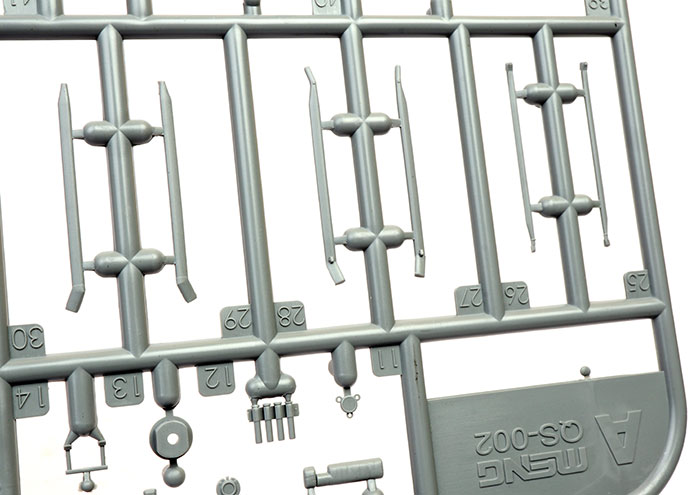112 parts in grey plastic, four parts in clear plastic, 15 photo-etched parts on a single fret and markings for four options. |