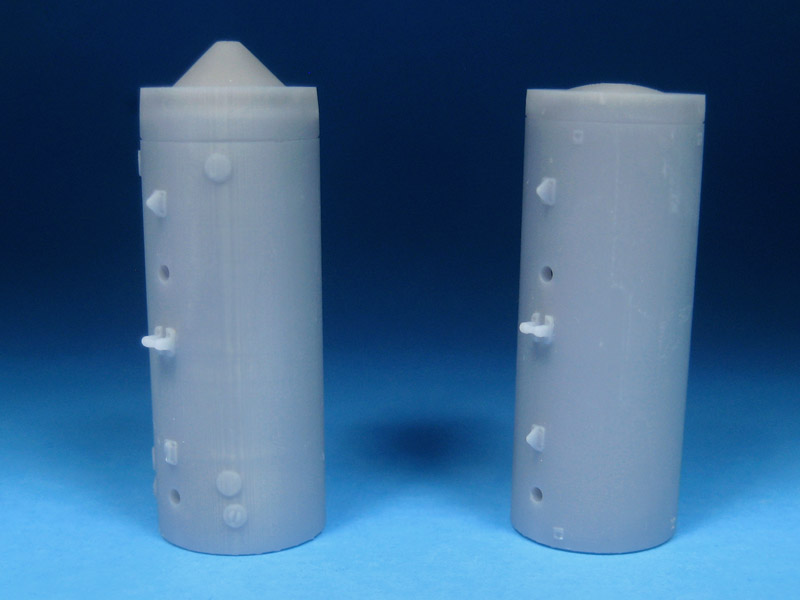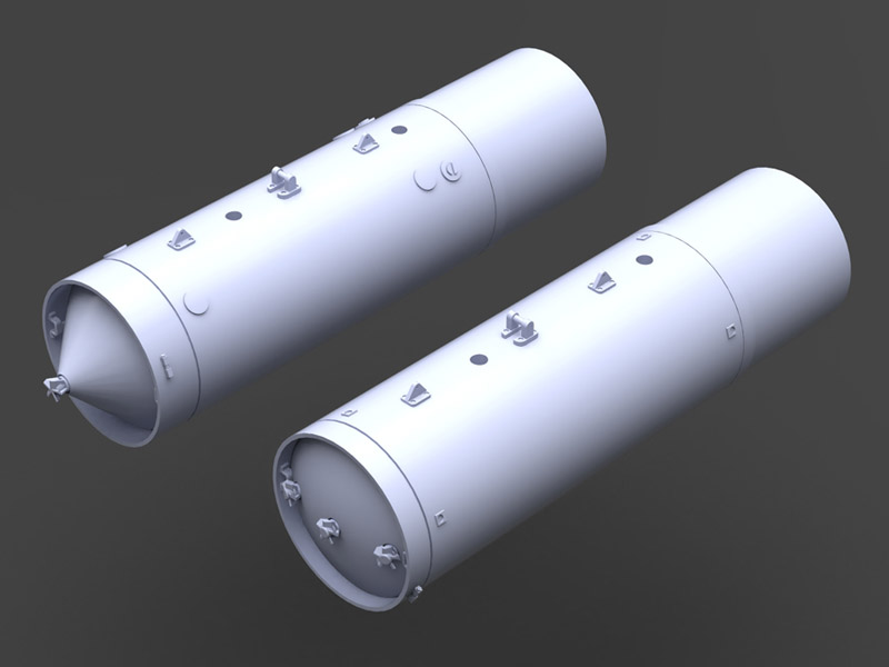 The Airfix B Mk XVI is a great little kit, but they left out the iconic 4,000 lb "Cookie" blast bomb so often carried by these aircraft. This set consists of two accurate, detailed 4000 lb HC Cookies, a Mk I and a Mk II. Both are complete with separate arming fuses and sway braces for nounting in the bulged bomb bay. Designed for Airfix B Mk XVI Mosquito, but can be used for any British aircraft that could carry the 4,000 lb. Cookie. A simple to assemble and install upgrade. CAD by Mike O'Hare.