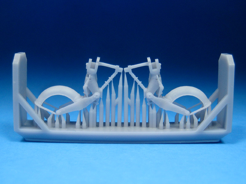 This set consists of new, detailed pilot's and navigator's seats, complete with molded-in late war harness, radios, throttles, Gee unit, control column, floor section with cutout for the separate entry hatch, and switchboxes with cable runs. Cockpit can be configured with or without the Gee navigation units..This set does not replace the whole cockpit, but gives you all the major details in a quick and easy to install format. Designed for Airfix PR/B Mk XVI kits, but can be adapted for use in the Matchbox and Special Hobby kits. CAD by Mike O'Hare