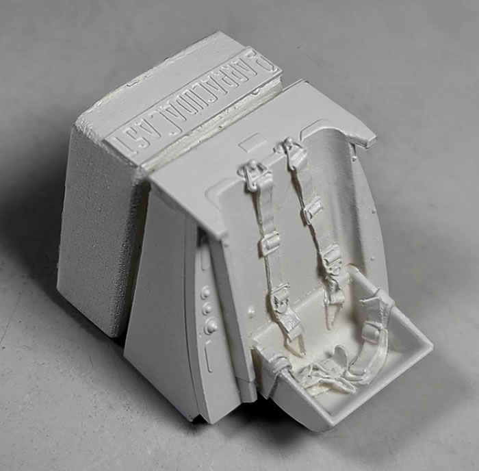 Contains a new cockpit rear bulkhead, featuring a superdetailed seat with accurate and naturally draped molded-in seat belts.