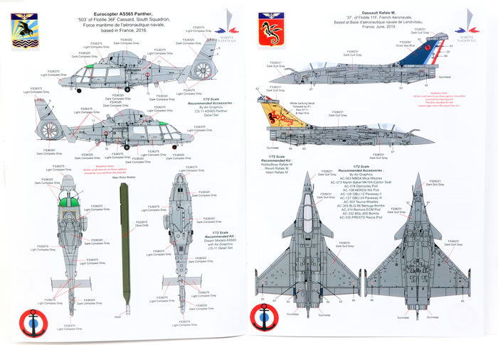 Each scheme has clear colour and decal placement drawings and notes and indicate which decals are to come from the donor kit. A list of suitable kits is mentioned, along with a list of suitable accessories produced by Air Graphics themselves.