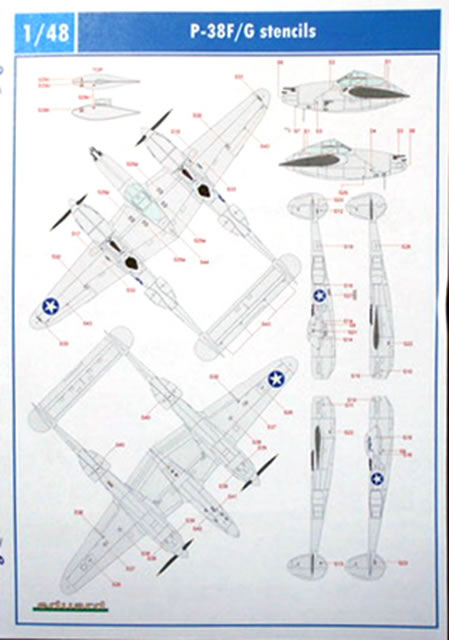 Instructions are in colour and cover both sides of an A4 and an A5 sheet. These give excellent decal placement information with upper and lower plans, port and starboard elevations, and port and starboard fuselage locations - great idea Eduard! All paint colours are called out clearly by name and by paint manufacturer numbers such as H52, C12 and MMP091 for Olive Drab (I’ll leave you to work out what these mean!). One side of the A5 sheet gives the stencil locations, of which there are sufficient for what looks like three models. All items are enclosed in a re-sealable plastic sleeve which is s very tight fit.