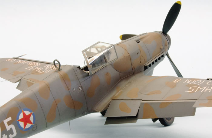 Yugoslavia did not have its own production, as was the case in Czechoslovakia at the time, so all Bf 109s came from German production. The appearance of the "White 45" even provides more information: it was produced in the WNF factory in Wiener Neustadt. These aircraft are quickly recognisable by the elongated overhangs of the landing gear bays in the inner areas of the upper wing surfaces.