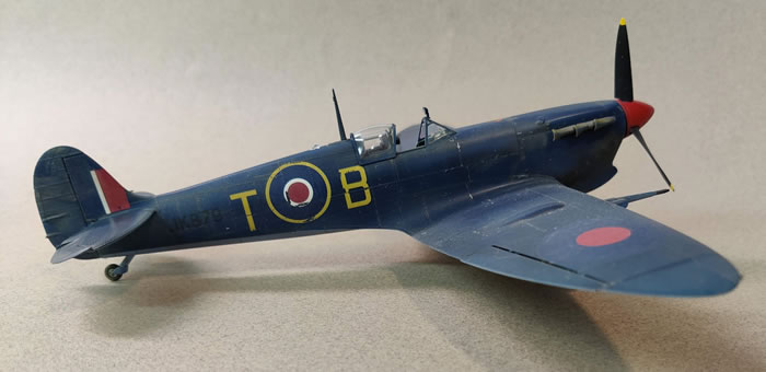 The Mk.Vb model, IR G is the famous mount of triple ace, Ian “Widge” Gleed, DSO, DFC. It features his distinctive personal Figaro marking, (Geppetto’s cat from the story of Pinocchio). Gleed was the Commander of 244 Wing, Bou Grara, Tunisia in April of 1943. On the 16th he was attacked by Messerschmidt’s of JG 77 and fatally crashed near the Mediterranean Sea while trying to limp back to his base. I painted I RG it the standard RAF desert scheme of Dark Earth, Midstone and Azure Blue with a red spinner, clipped wings and Aboukir tropical filter.